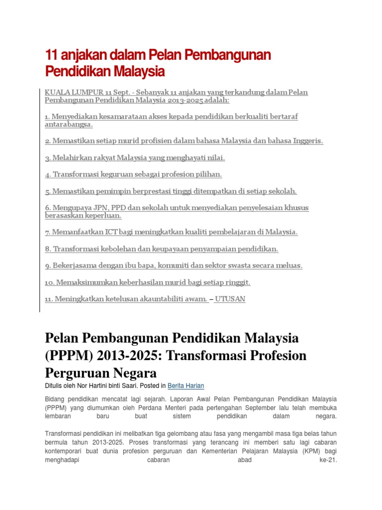 11 Anjakan Dalam Pelan Pembangunan Pendidikan Malaysia Pdf